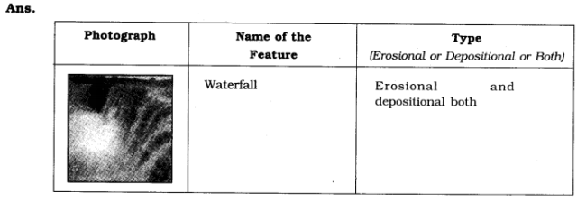 Observe the photographs given below. These are various features made by a river. Identify them and also tell whether they are erosional or depositional or landforms formed by both.