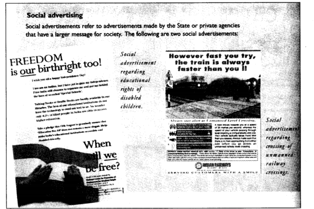 Answer: Social advertisements are advertisements made by the State or private agencies.