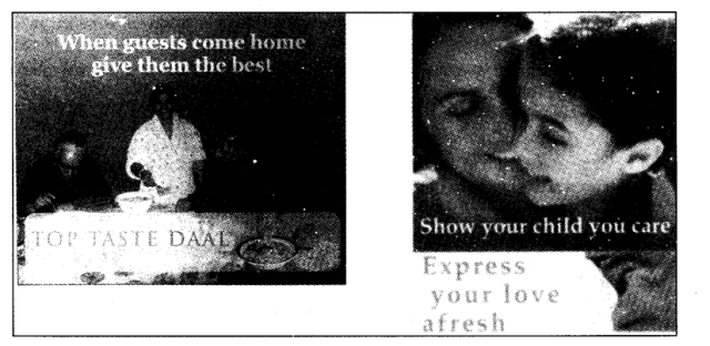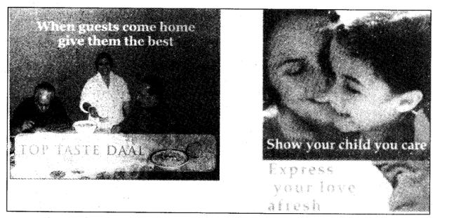 Answer: The two daals namely Top Taste Daal’ and ‘Best Taste Daal’ are saying two different things. Top Taste Daal’ is appealing to our social tradition of treating guest extremely well. On the other hand ‘Best Taste Daal is appealing to our concern for our children’s health and that they eat things that are good for them. Values such as treating our guests well and making sure and children get nutritious food are used by brands to create brand values. These brand values are conveyed through the use of visuals and words to give us an overall image that appeals to us.