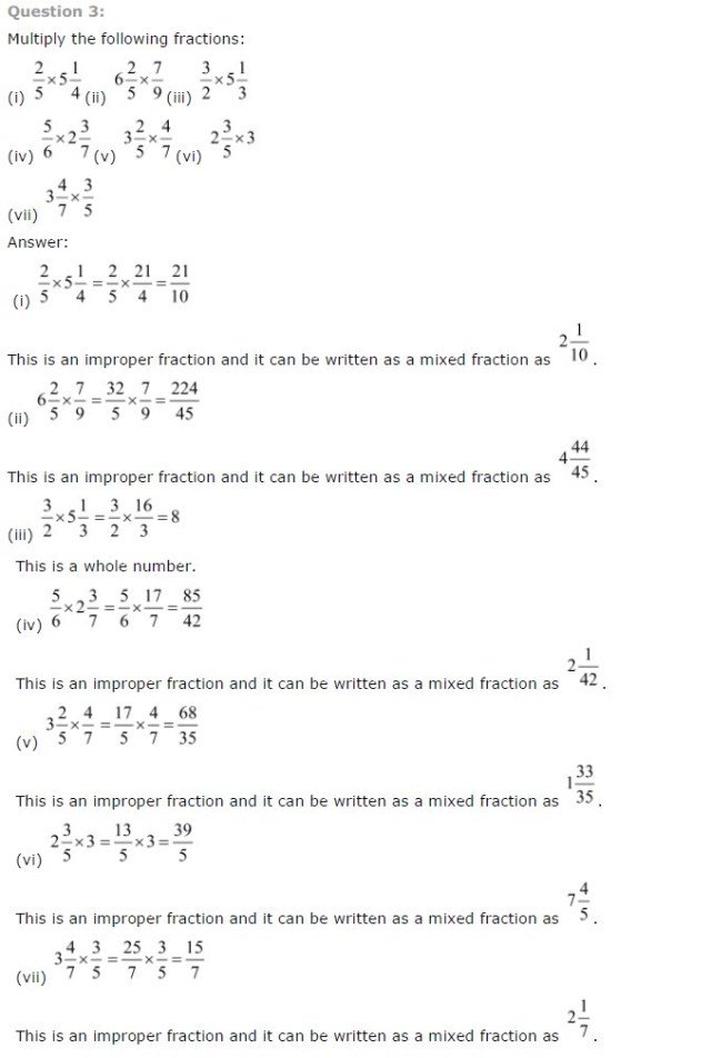 CBSE Board NCERT Solutions for Class 7th Mathematics Chapter2:Fractions and Decimals