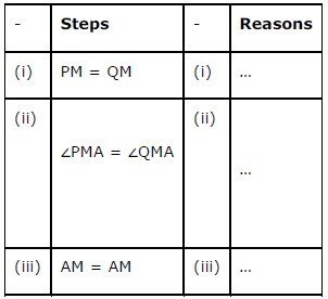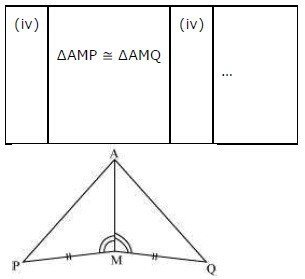(iv) SAS, as the two sides and the angle included between these sides of /AMP are equal to two sides and the angle included between these sides of /AMQ.
