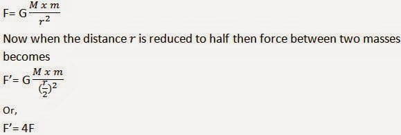 Hence, if the distance is reduced to half, then the gravitational force becomes four times larger than the previous value.