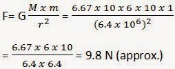 Let ME be the mass of the Earth and mbe the mass of an object on its surface. If R is the radius of the Earth, then according to the universal law of gravitation, the gravitational force (F) acting between the Earth and the object is given by the relation:![]()