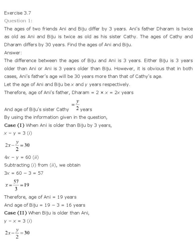 NCERT Solutins For Class 10 Mathematics. Exercise 3.1, Exercise 3.2, Exercise 3.3, Exercise 3.4, Exercise 3.5, Exercise 3.6, Exercise 3.7, Exercise 3.8