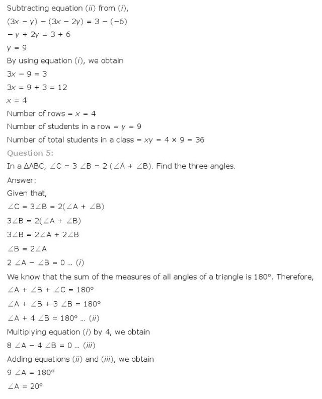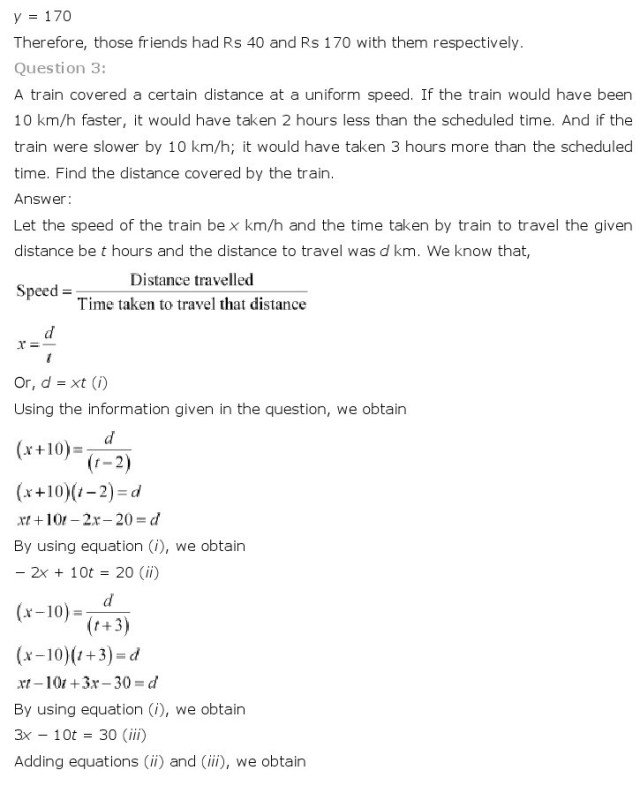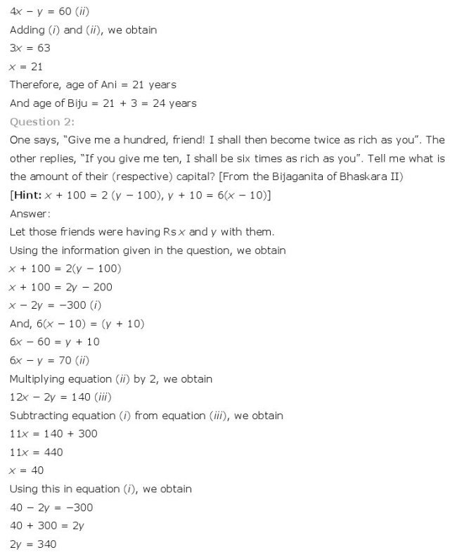 CBSE NCERT Solutions for Class Ten Mathematics Chapter 3 : Pair of Linear Equations in Two Variables