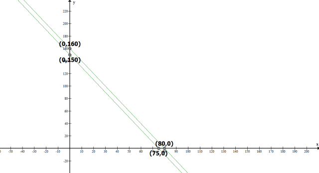 3. The cost of 2 kg of apples and 1kg of grapes on a day was found to be Rs 160. After a month, the cost of 4 kg of apples and 2 kg of grapes is Rs 300. Represent the situation algebraically and geometrically.